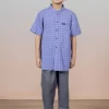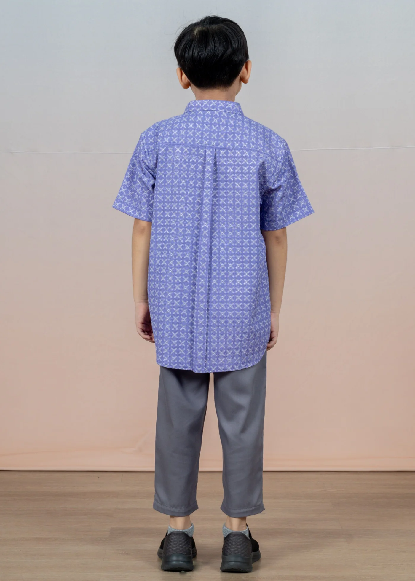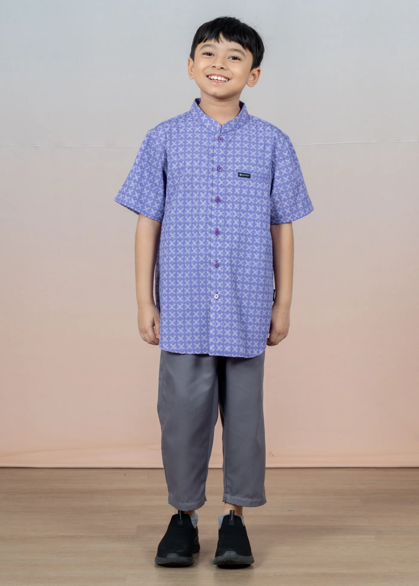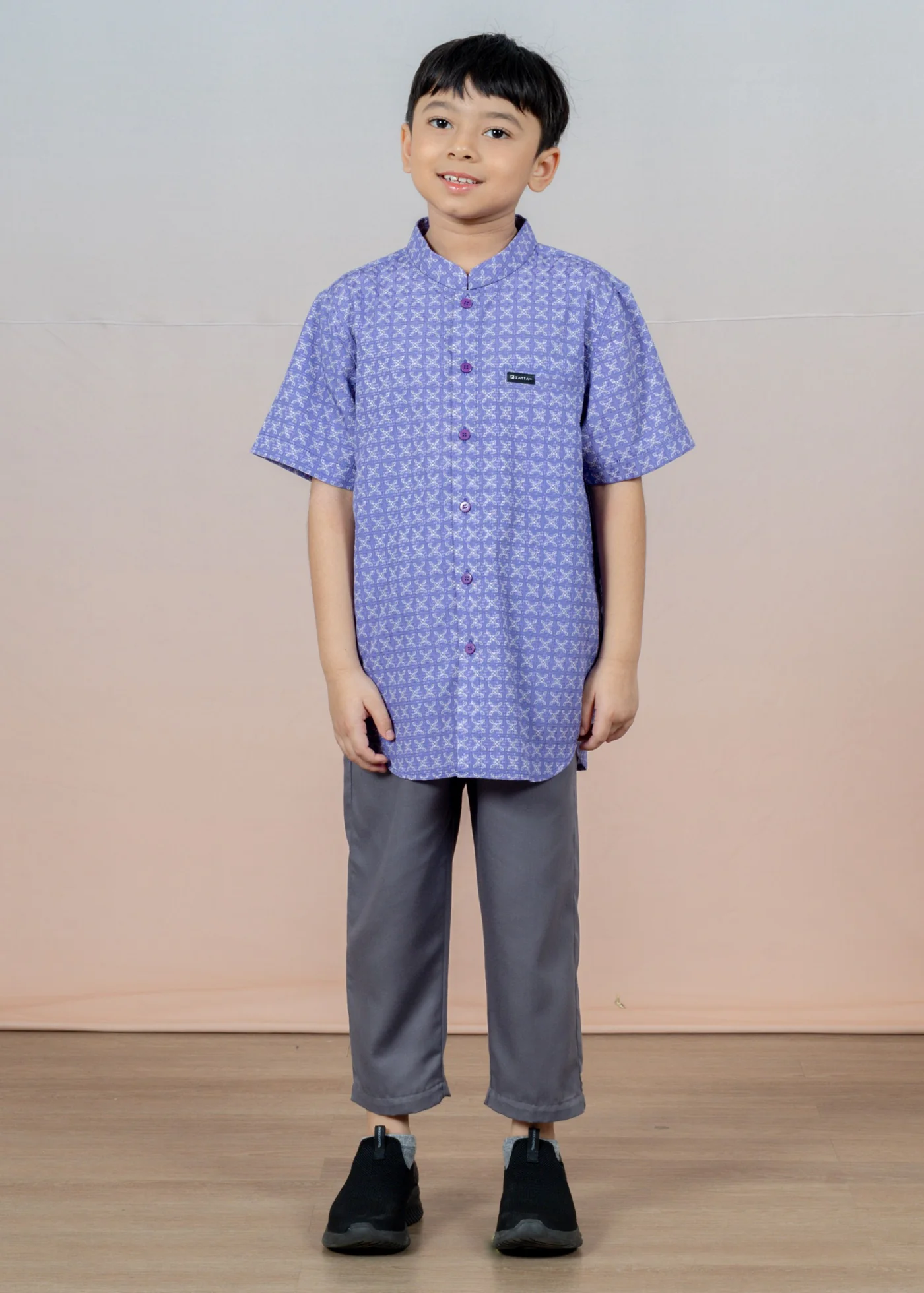 Koko anak terbuat dari material katun dobby, dengan handfeel material yang halus, lembut dan nyaman. Yang memiliki karakteristik bahan bertekstur. Detail bukaan kancing depan, tangan pendek, kerah sanghai. Motif yang terinspirasi dari geometri bangunan casablanca di Maroko.